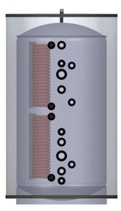En multifunktionstank som förutom en volymökning även kan erbjuda andra tillämpningar. Bland annat med hjälp av ytförstorande kamflänsrör (slingor) för både tappvatten och solapplikationer. Förberedd för inkoppling av shuntventiler för distribution till värmesystem och olika tappvattenlösningar beroende på önskemål och behov. * Tankarna som har solslinga (2xB12L-SOL15)