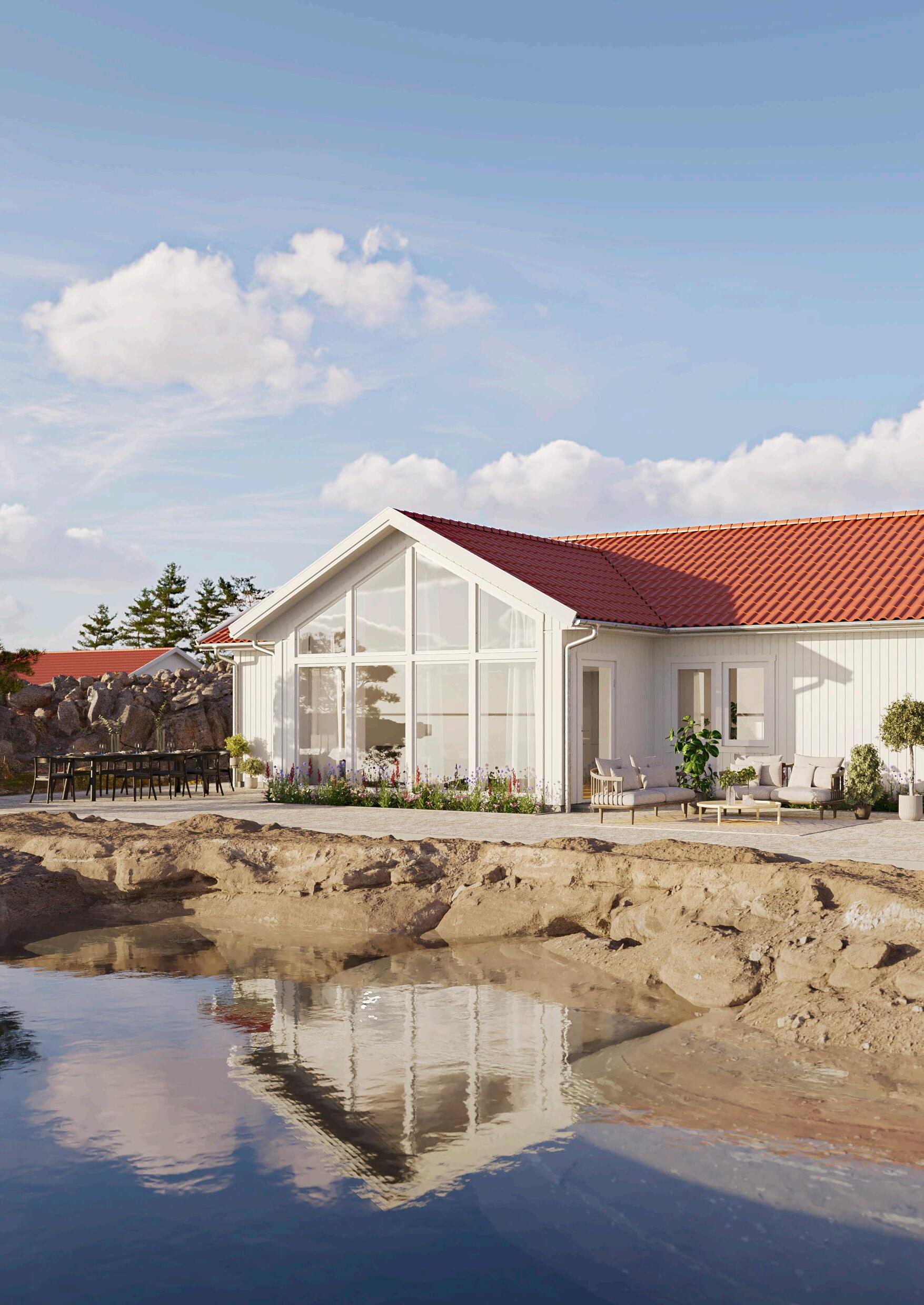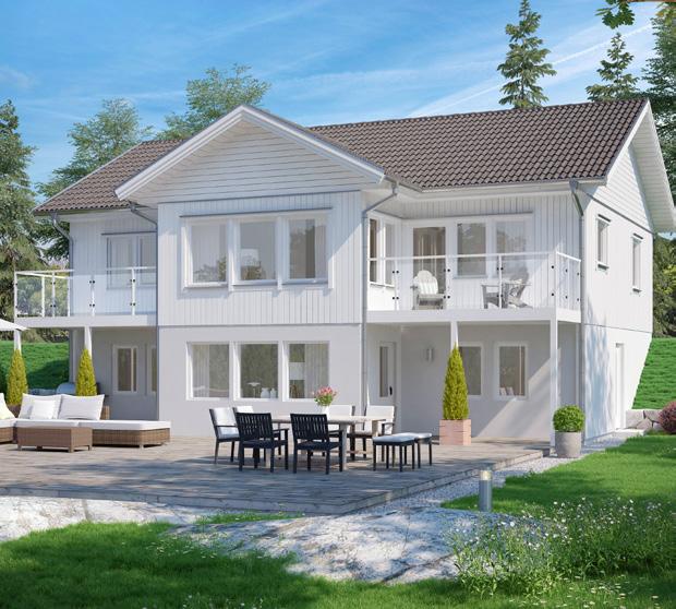 För 1½-planshus med inredd övervåning, 2-planshus, sluttningshus samt hus med källare Levereras löst.