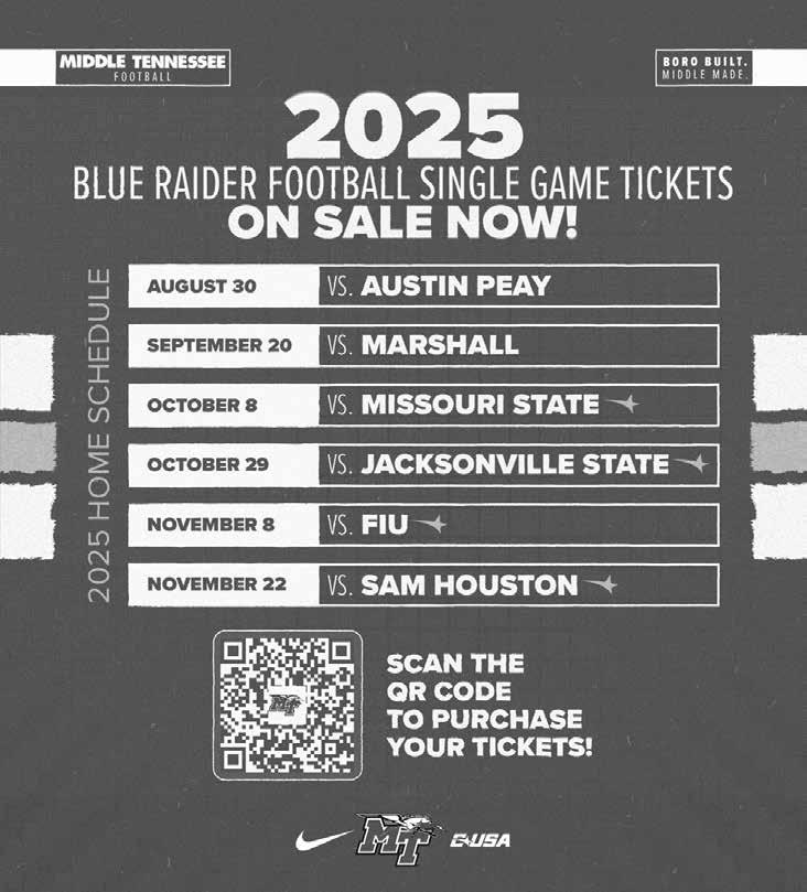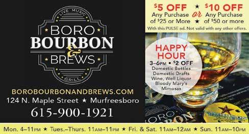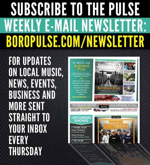 showcase and cypher where raw talent, sharp lyricism and real culture take center stage. From local spitters to nationally touring acts, this is the spot where the underground and the spotlight meet. This event is designed to shine a light on performers, build connections within the culture and bring something fresh and exciting to Murfreesboro’s music scene. Presented and hosted by E.T. & Raw Proof and powered by the skills of DJ Know Love, every show is built to provide beats, barz and energy. The first session goes down Saturday, Oct. 4, from 8–11 p.m. at Cedar Glade Brews (906 Ridgely Rd.) and features performances by Raw Proof, Spoken Nerd, Charlie Whitefolks and Manifesto. For more information, visit barzintheboro.com.