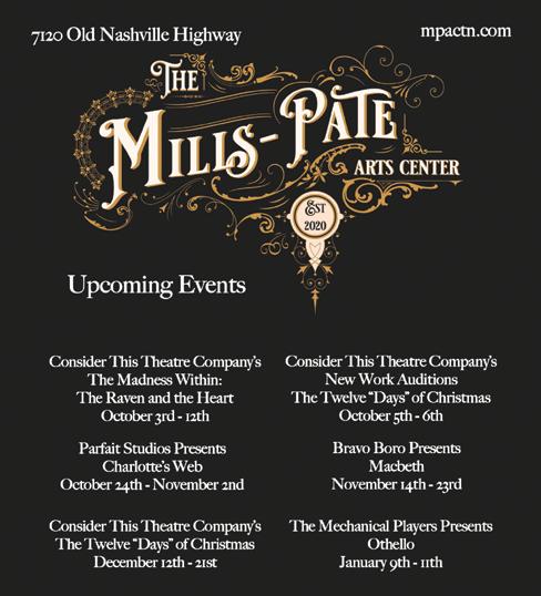 The Black Barn Market and Craft Sale, a vibrant outdoor festival, returns to Events at East 96 (9901 Lascassas Pk., Lascassas) on Saturday, Oct. 11, from 10 a.m. to 4 p.m. This unique event brings together over 100 craft vendors, food trucks and live music for an outdoor shopping experience in the heart of a family farm. Explore a diverse range of handcrafted goods created by talented artisans and craft vendors. From unique jewelry pieces to intricate home decor items, there’s something for everyone. Visit the toolshed to see talented crafters demonstrate their skills, showcasing basket-making, pottery, weaving and other traditional techniques. For more information, call 615-9044676 or visit blackbarnmarkets.com.