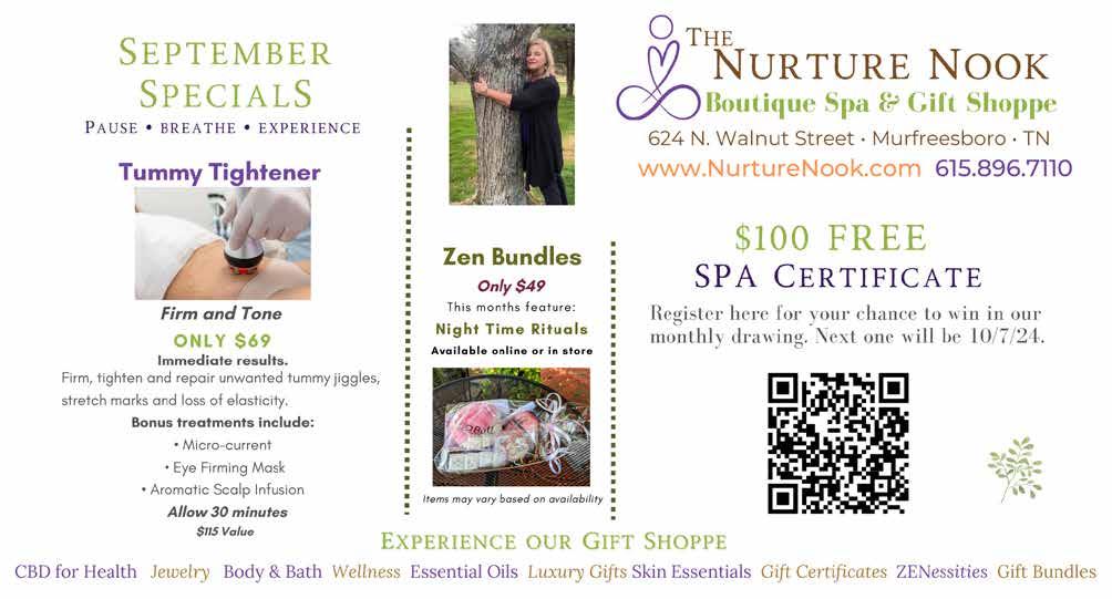 Jennifer durand is the owner and operator of The Nurture Nook day Spa & gift Shoppe; she is a certified Qigong and Breathe Empowerment instructor, a skin care and makeup specialist. visit nurturenook.com or facebook.com/nurturenook dayspa or call 615-896-7110 to learn more.