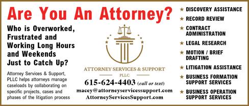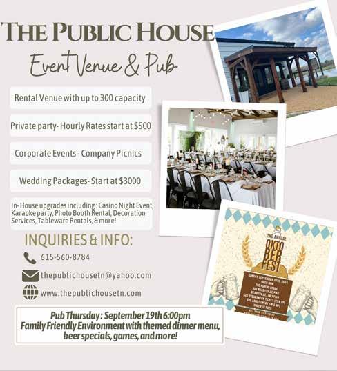 giving and community support on Saturday, Sept. 7 from 5–8 p.m at Saddle Woods Farm (9522 Franklin Rd.). Enjoy live music from country music artists Lewis Brice and Pryor Baird. Bid on exclusive trips, luxurious vacations, fine dining experiences and more at the live auction. Dinner will be provided by Tennessee Craft Butcher. Community support helps continue empowering people with disabilities and older adults to live, work and socialize as they choose. For more information, visit journeystn.org or call 615-890-4389.