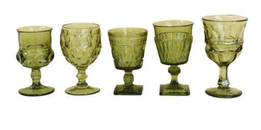 5 25” Colored Water Goblet & 8 50” Angled Wine Glass