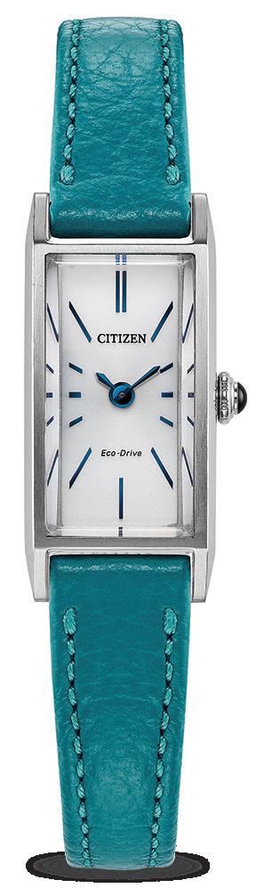 Silver-tone Stainless Steel Case with Silver Sunray Dial on Aquamarine Leather Strap, Eco-Drive Quartz Movement