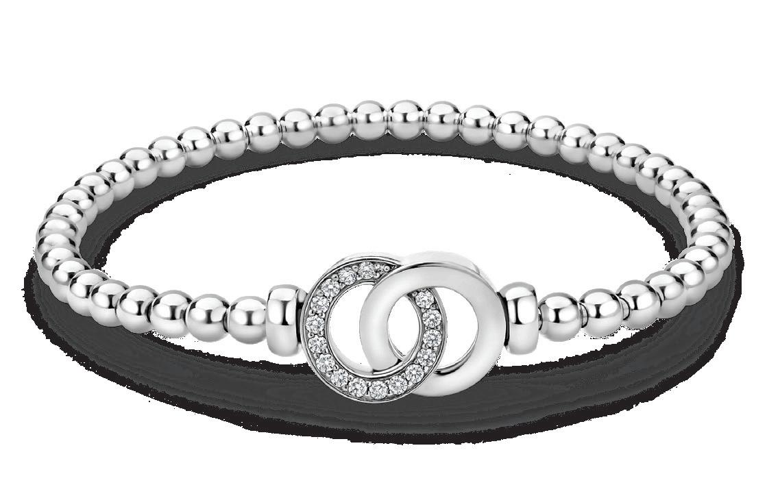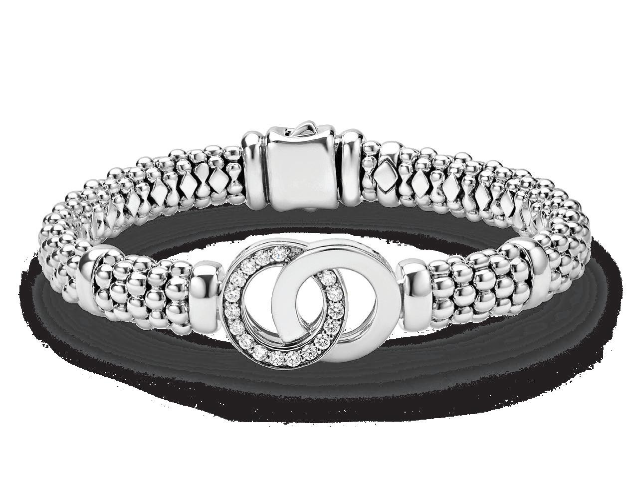 Sterling Silver Interlocking Diamond Caviar Bracelet