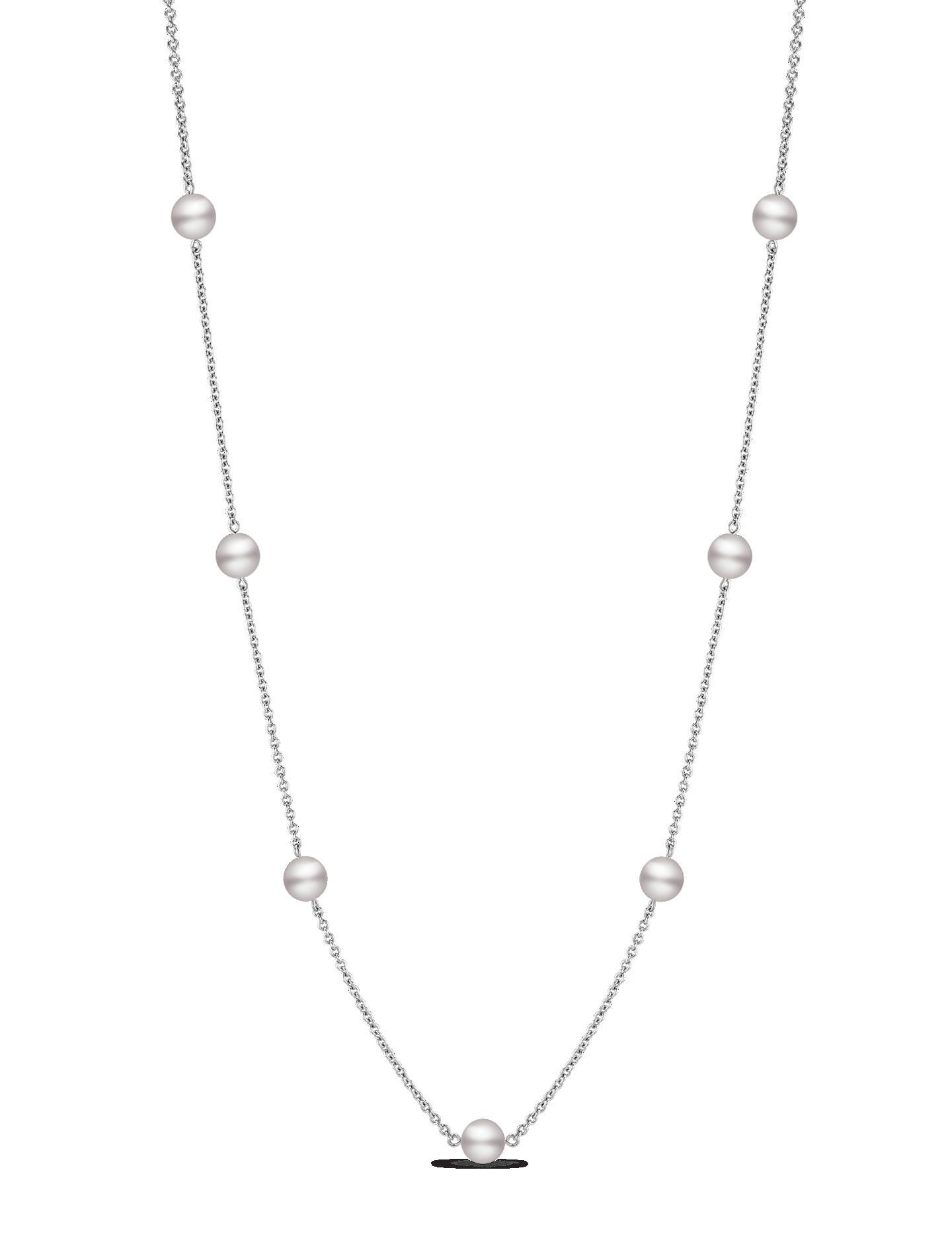 18K White Gold Akoya Cultured Pearl Station Necklace, 32"