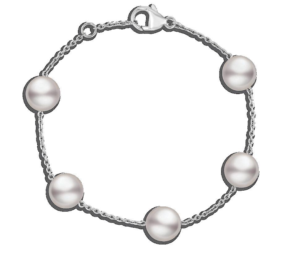 18K White Gold Akoya Cultured Pearl Station Bracelet