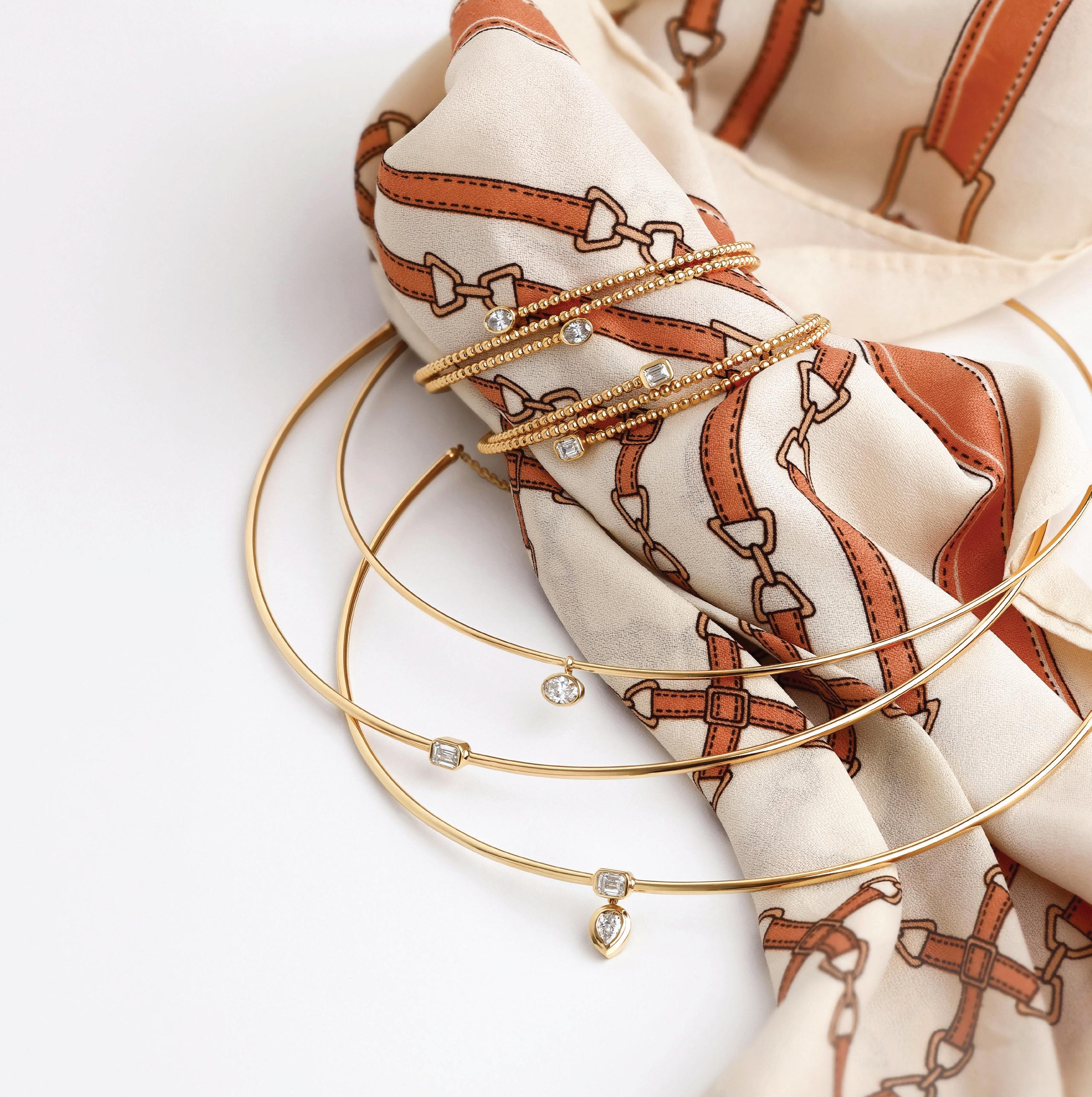 18K Yellow Gold 5 Diamond Stretch Station Bracelet $5,880