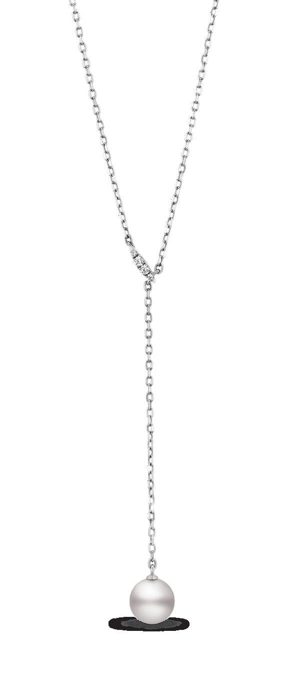 18K White Gold Akoya Cultured Pearl and Diamond Lariat Necklace, 20"