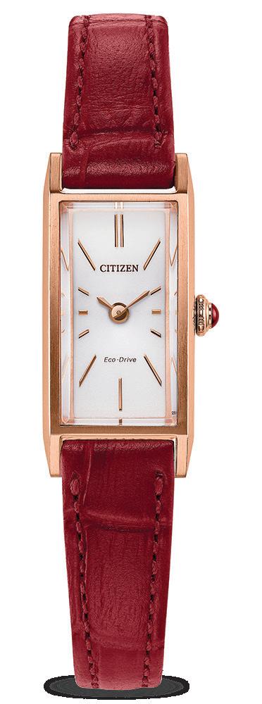 Rose Gold-tone Stainless Steel Case with Silver Sunray Dial on Red Leather Strap, Eco-Drive Quartz Movement