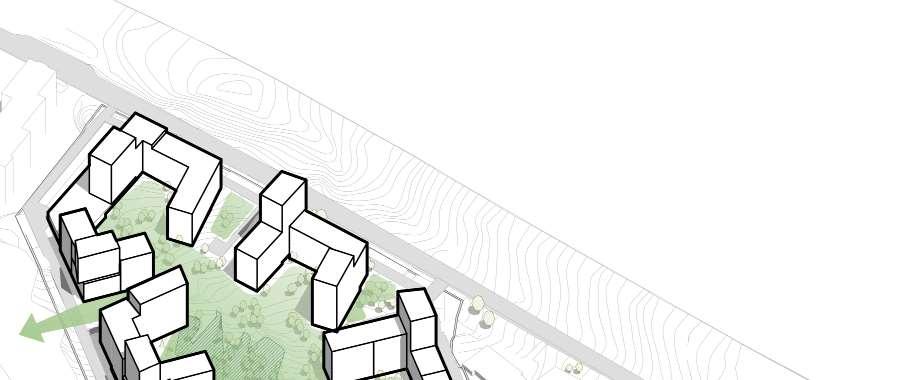 Practice shows, that in urban areas the best way to plan residential areas is to make them filled with middle-high buildings, that also have public features included. Those features are sports, commercial, rest areas, kindergartens, etc. In this project the goal was to make this planning principles to work, with comprehending a difficult landscape.