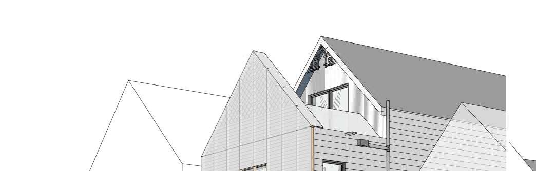 The houses are made in the principle of closednessopenness.Theyareatthesametimeclosedfromother neighbors and open to the surrounding greenery and landscape.