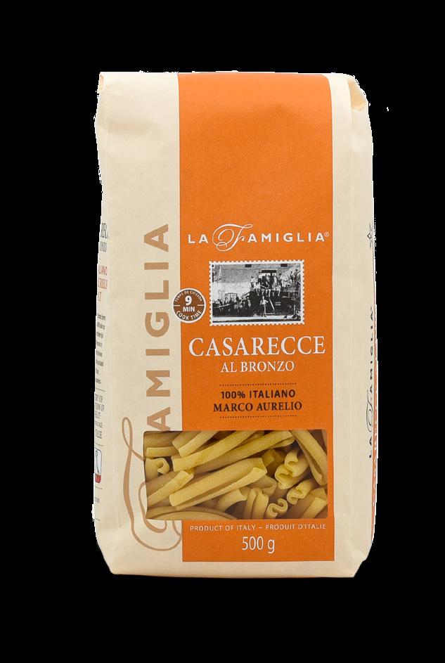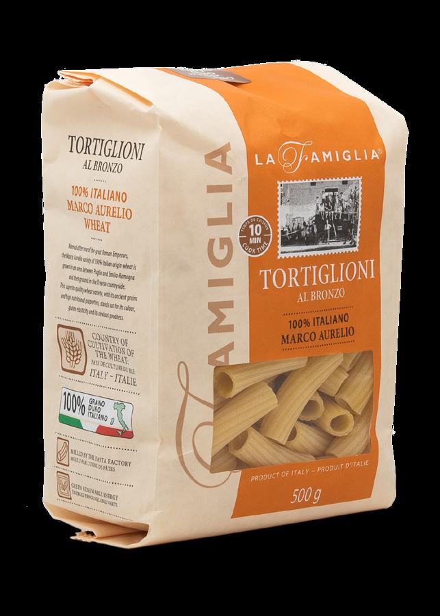 Varietà Cappelli, defined as “the most beautiful durum wheat ever cultivated”, has been one of the most widespread crops in South-Central Italy for years. This variety, suitable for organic agriculture, features distinctive brownish-black awns and large glassy amber grains. Once stone milled, it produces a beautiful amber-yellow hued semolina. This colour is then highlighted in each and every La Famiglia Varietà Cappelli pasta cut.