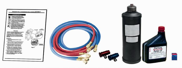 1X34-7iCONV Servicekit zur Umrüstung des Geräts x53 vom Kältemittel R134a zu R1234yf. Inbegriffen sind yfServiceschläuche und Kupplungen, Filtertrockner, VakuumpumpenÖl und Tankadapter