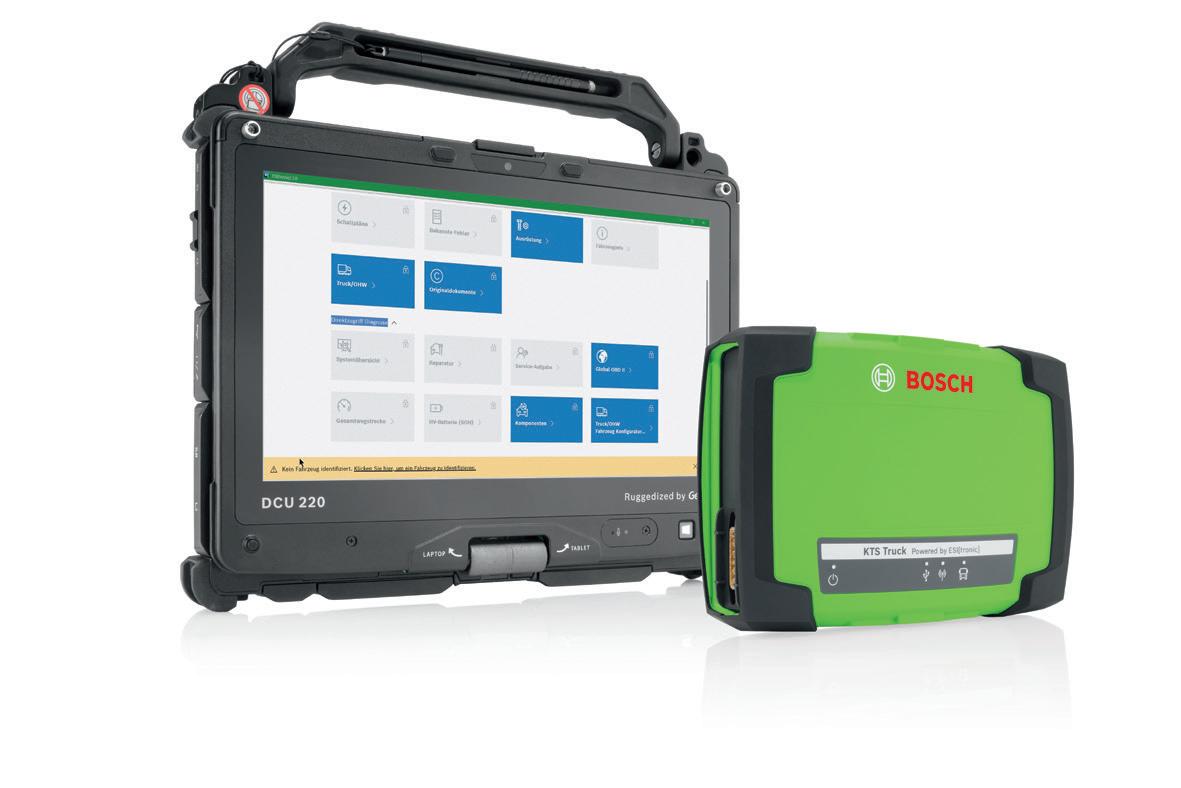 Il sistema portatile completo KTS 900 Truck di Bosch si compone del versatile modulo KTS Truck e dalla flessibile unità di controllo diagnostico (Diagnostic Control Unit) DCU 220 con il software di diagnosi ESI[tronic] Evolution con il tipo di informazione Truck e/o OHW venduto separatamente. Il robusto PC convertibile DCU 220 è un portatile e tablet in un solo dispositivo che permette di lavorare in modo flessibile, indipendentemente dalla posizione.