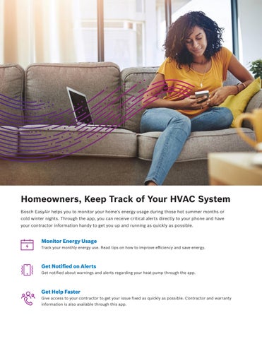 u The Bosch EasyAir app enables in-app product registration, simplifies installation and troubleshooting, and allows remote monitoring of energy usage as well as critical alerts.