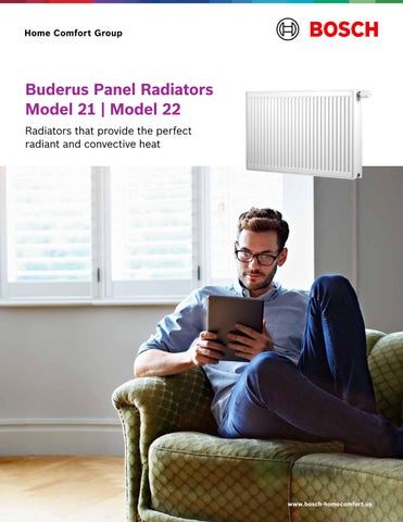 A unique design feature on all Buderus panel radiators is the FlowSetter Valve, which enables the installer to quickly and easily regulate water flow through the radiator room by room. The result is a consistent, even heat throughout all panel units in the house. Lowcost panel radiators from Bosch are available in a variety of lengths and heights offering many design and heating options. They are stocked in four heights, 12”, 20”, 24” and 36” and in two depths, Model 21 (2½”) and Model 22 (4”).