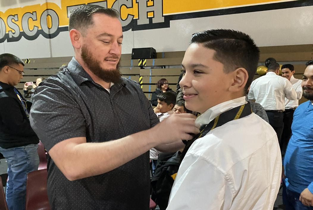 Following tradition, our freshmen recently were presented with their Bosco Tech class ties at the traditional Mass & Tie Ceremony. Seeing family members, friends, upperclassmen and faculty support these young men and cheer them on fortified Fr. Damien’s homily message reminding these young men that they will never walk alone; someone will always have their back. What an important and strengthening reminder in both their educational journey and walk of faith.