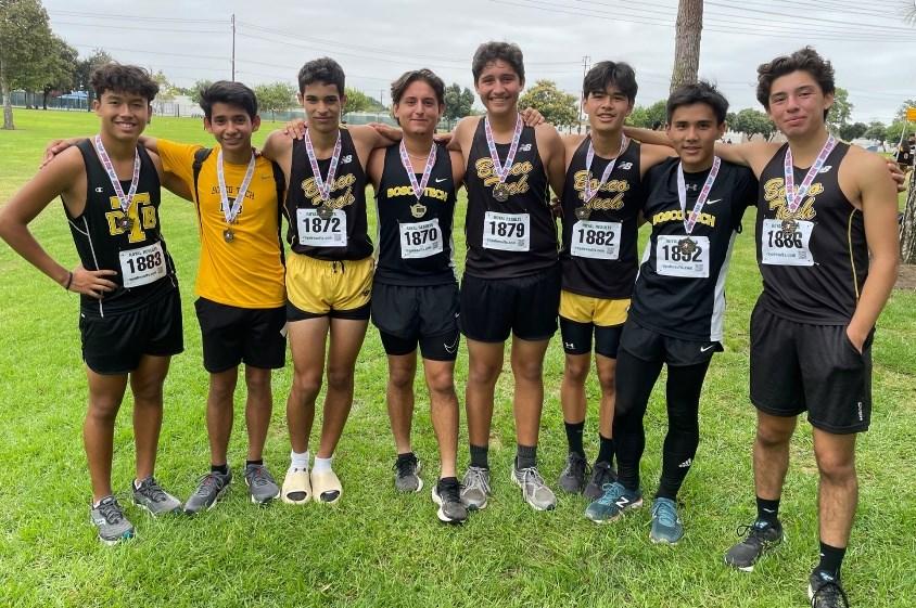The next meet was our second league meet, The Del Rey League Duals held on a hilly course at La Mirada Regional Park on October 11. The JVs repeated a 2nd place finish with 5 of our runners in the top 10. They were led by junior Khiru Khan’s great 19:19 PR run. In a close battle with Salesian that came down to the wire, our varsity took 4th place overall, led by Christian’s and Daniel’s 5th and 6th place finishes. Daniel was the fastest sophomore in the race. No medals are given at regular league meets.