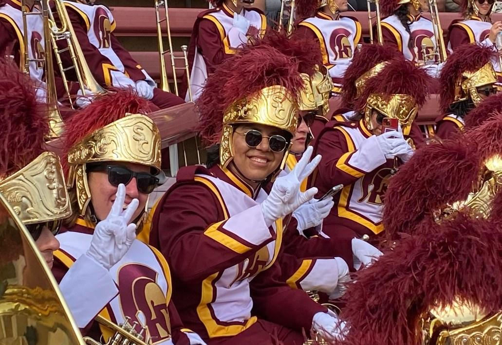 Recent Tech graduate VictorPatino (MAT ’21), who played in the Royal Techmen Marching Band for four years, is happy to be part of a musical family again. Victor, who plans to major in Animation at SC’s School of Cinematic Arts, plays third trumpet for the famous Trojan Marching Band.