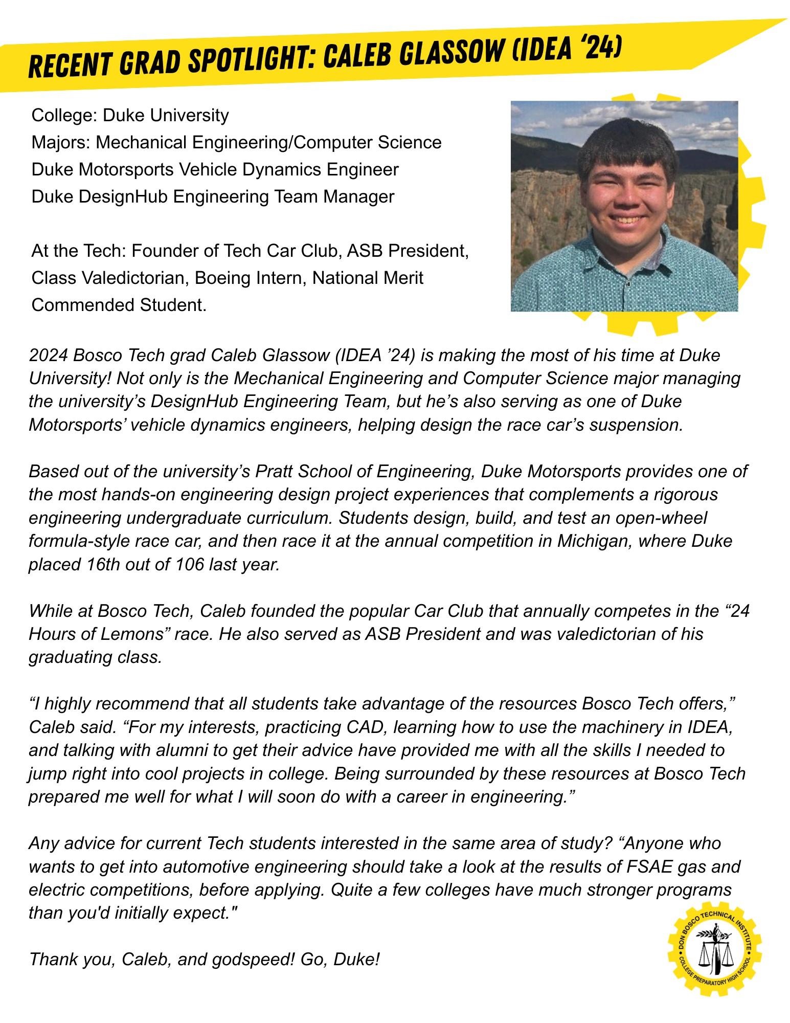 Recent Grad Caleb Glassow by Bosco Tech - Issuu