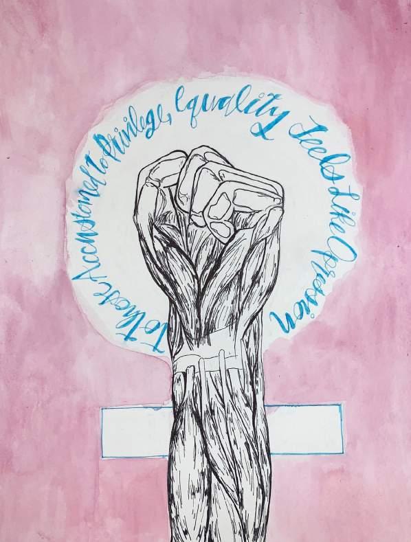 I will never be able to date a woman without partially condemning her to being the Nebulous Woman. Just as my boyfriend is not only my boyfriend, but also Boyfriend: a cisgender man granting invisibility to my queerness and heterosexual privilege to me. With Boyfriend, I am not afraid to tell my parents or even my grandparents about my relationship— they invited him over for dinner almost perfectly happy and non-deviant. And as a 5’10” woman, it is not often that I feel feminine, but I do next to tall, strong Boyfriend and I hate how I love it.