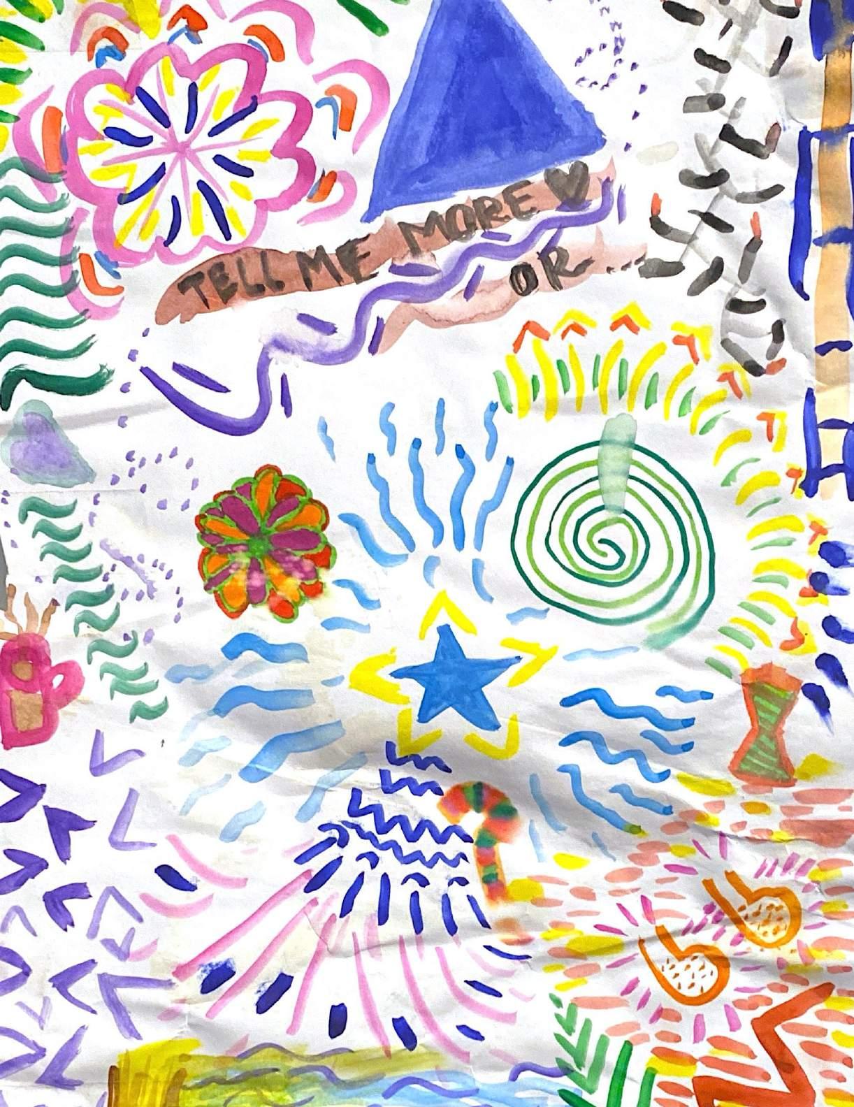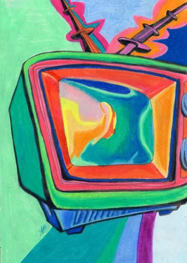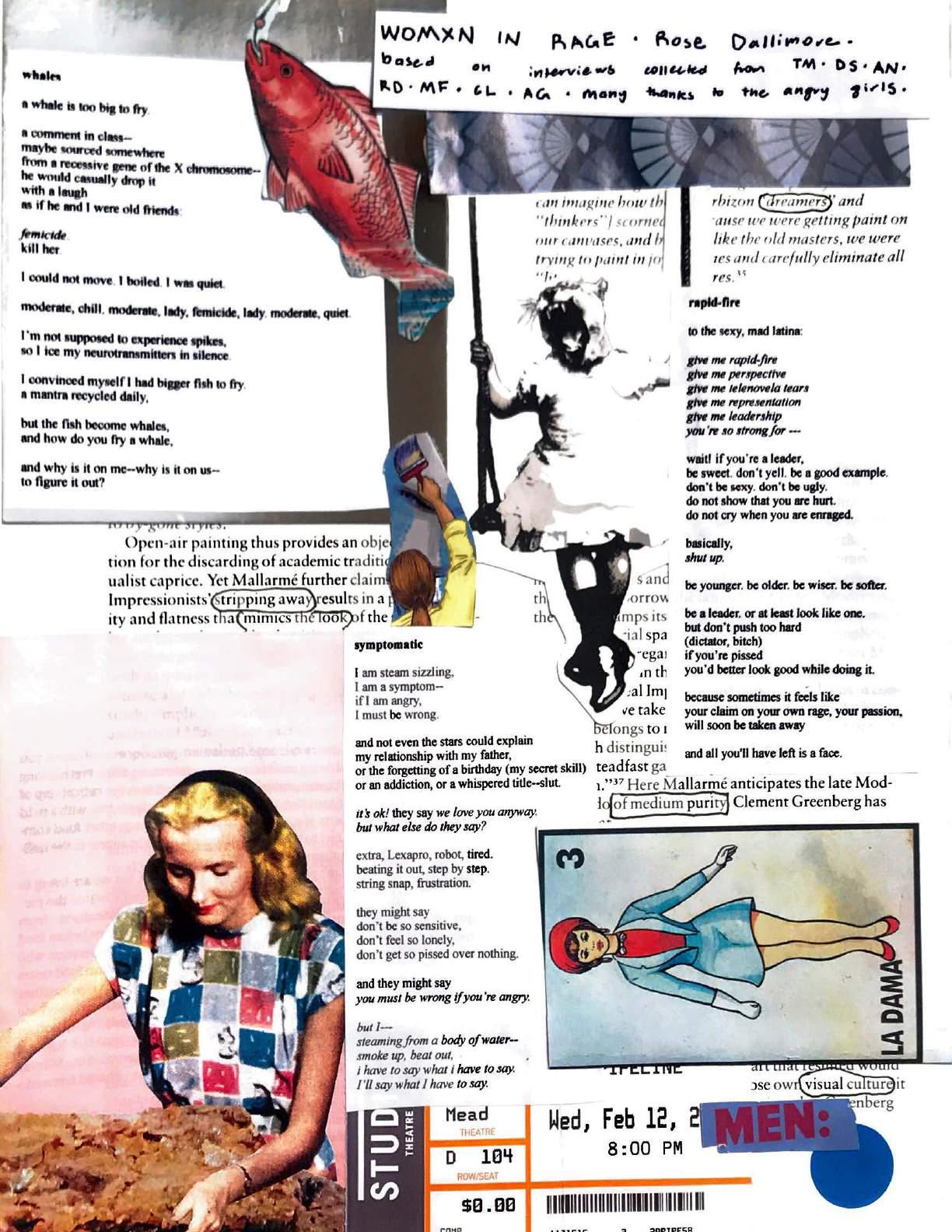 He didn’t give me time to pick up the neon and plastic beads. Psychedelic fantasia on the ground. e video store holed up in a grey building that crumbled like grain between your teeth. Outside it is not raining. Spindles and bers, praying mantis, preying mantis, the mantra overwrites the cassette tape that we rented. We learned the wispy tongues with bloated, seizing mouths allergic to lips. I spill the beads, the second, he angers, or else he angers then I spill the beads. e bracelet breaks the cement. e yellow alligator at the bottom of the pool chases me across the chlorine place and I am scared. We ate chestnut puree tendrils and whipped cream from a frozen rectangular prism. e bee was dead so it stung me, crying. I was about to pick them back up, the broken beaded bracelet, when he arrived. e rst place was billowy textured white clouds oating half ensnared by the blue sea. e cold was water and I giggled. She and grandmother say we’re swimming beneath a dictator’s palm, and the castle on the hill by the river was ours but now it’s an apartment complex. e elusive camou aging creature, yet, sips cocoa in our warm kitchen. is nightmarish vision is our pet. Gnawing worry about decisions sing historical operas with the determinants I want to control but others do. Passenger-strike mob with wooden signs tramples train without looking back, but however indeed while by. e tracks unwind like furls of smoke from a camp re, and I do not know where to begin, but maybe sex and warm plum dessert.