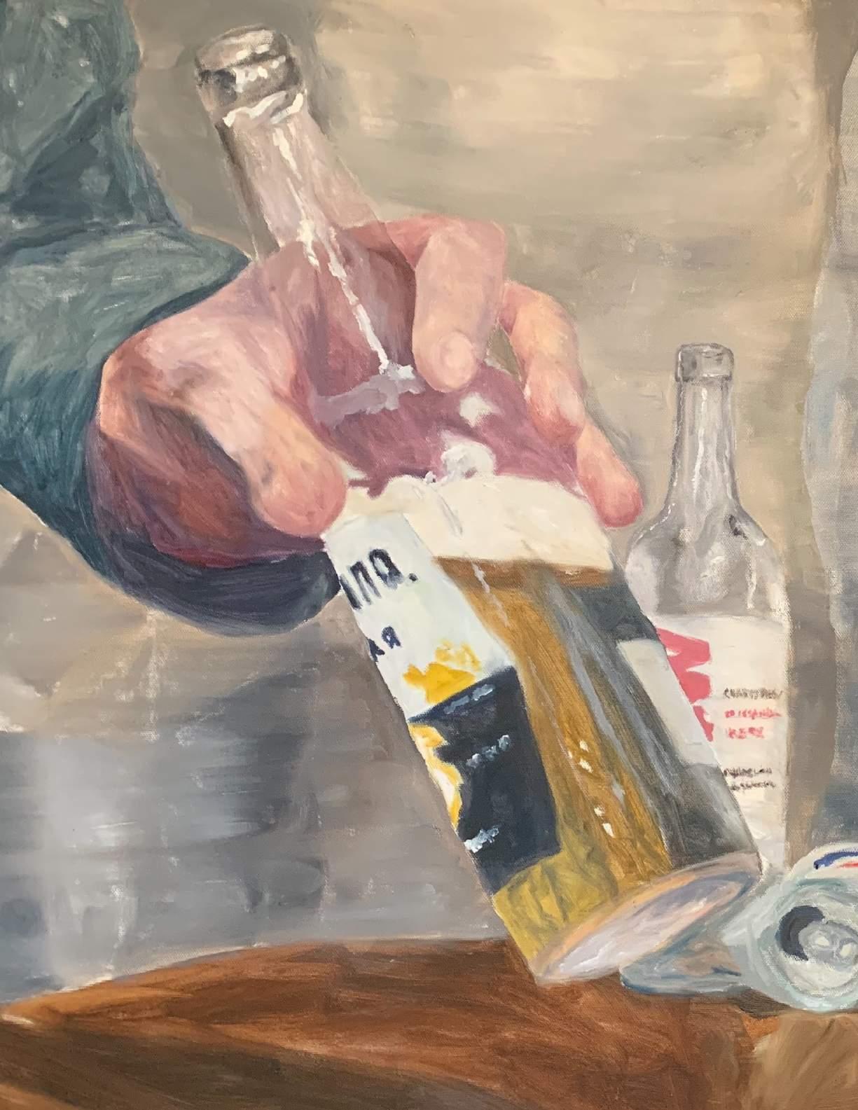 I hover beside him, not grounded gait. But now, he reeks of whiskey, low achingly frail shoulder managed to carry, stride wobbling through granite tentatively-carefully until I think my frame will 40 crush under his weight.