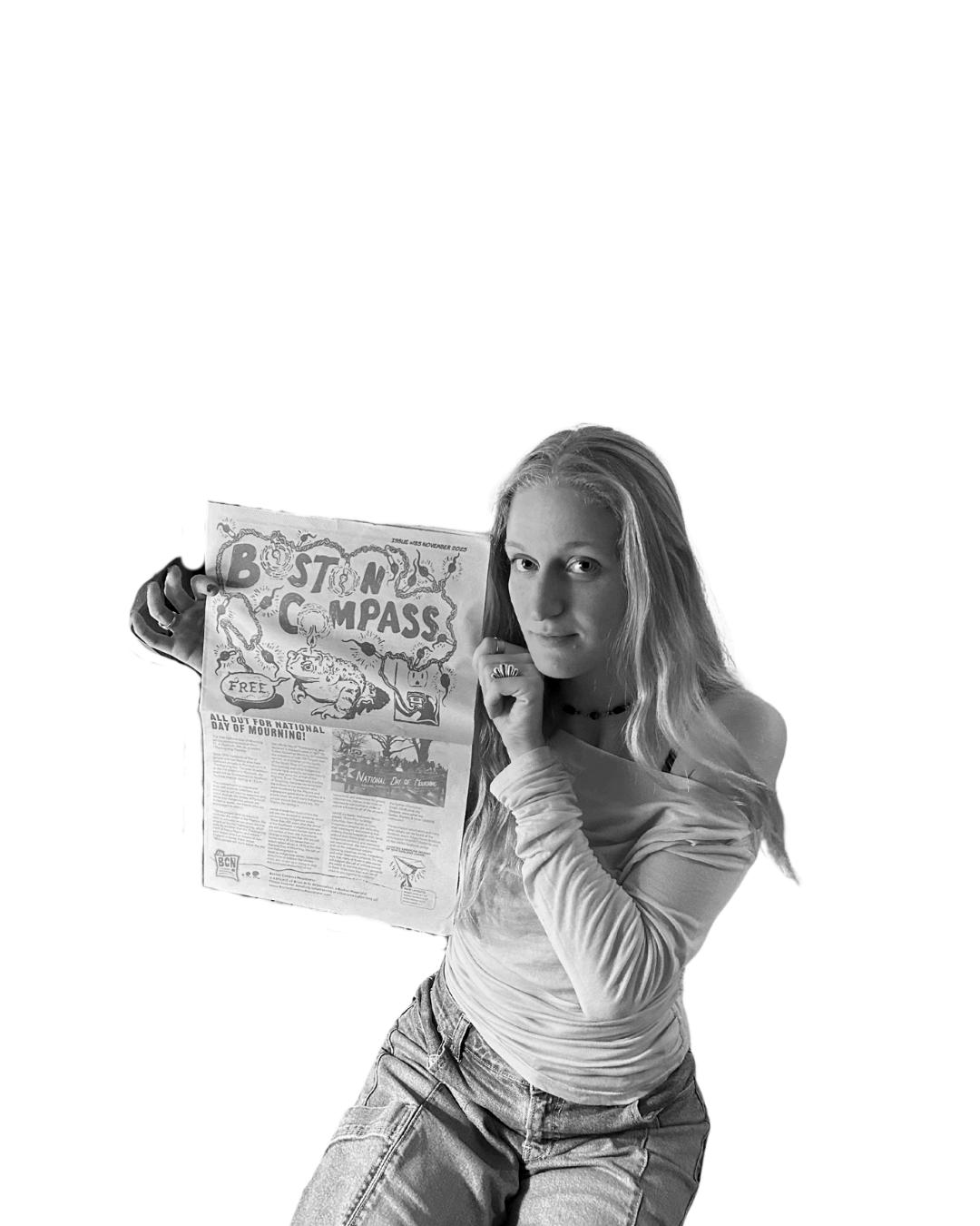 My favorites this month are “ Wake Up The Community” for the inside BTS scoop on WUTE and “Sweet Tooth” because I too feel like a defrosting frog on my way to Felipe’s I wanted to take a smidge of a page to introduce myself: my name is Kelsey and I am delighted to meet you as the production manager of the Boston Compass! I grew up in Indianapolis where I learned to crack jokes like my grandparents and run fast like the racecars I graduated from the University of Vermont where I studied biochemistry and more notably, wrote, edited and humbly served the Water Tower, the campus ’ s alternative newsmag I’ve been researching, running, and dancing at house shows in Boston ever since and I am delighted to support another community focused, artsy, humorously spirited publication