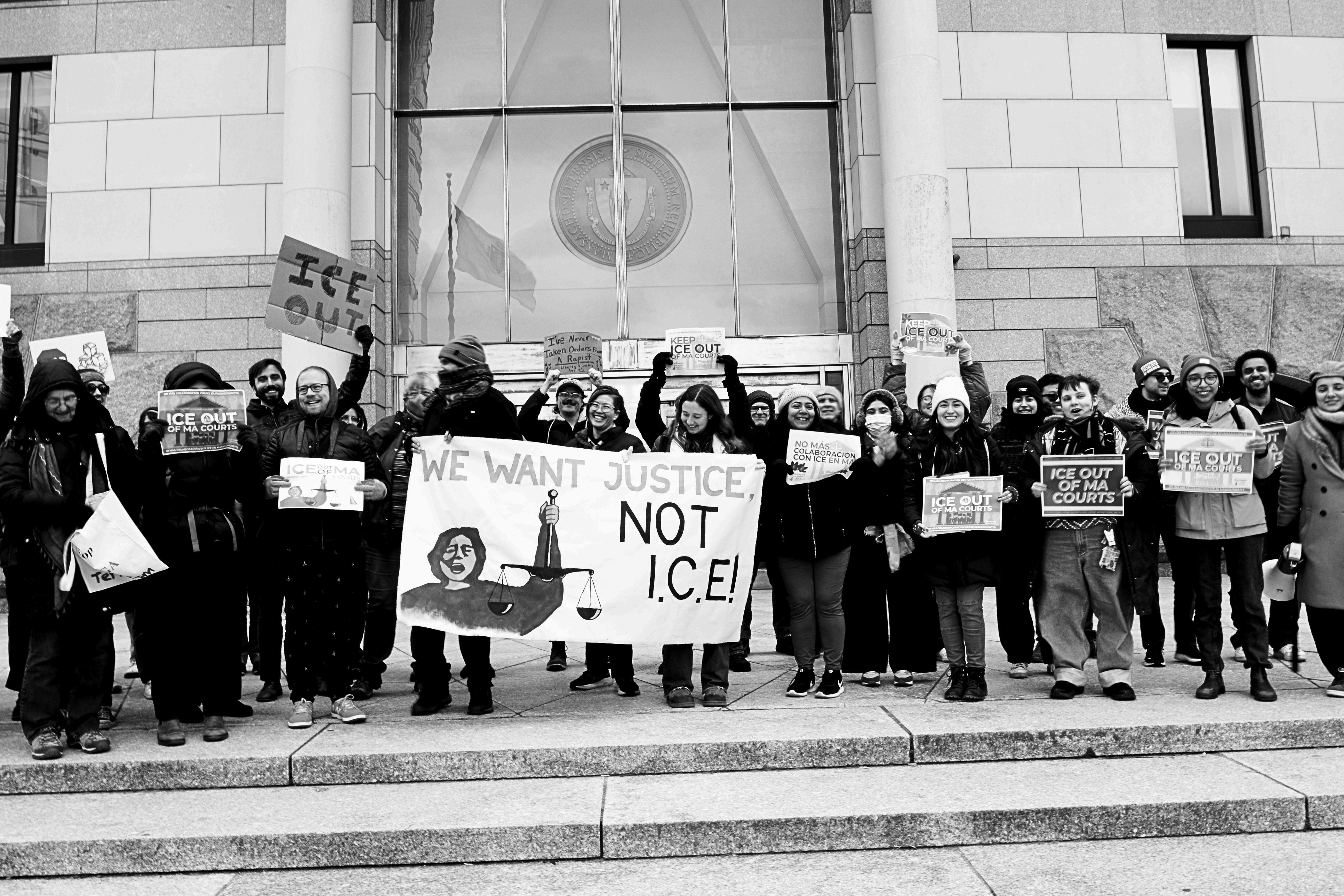 (ICE) has weaponized Massachusetts courts against local immigrant communities At least 405 neighbors many of whom come from over policed and over-surveilled communities have been violently taken from courthouses by ICE without due process