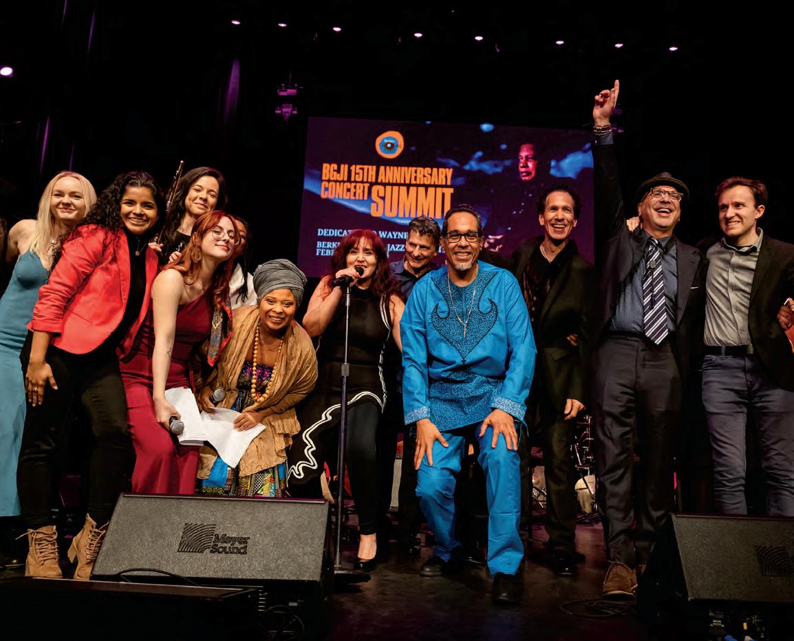The Berklee Global Jazz Institute (bgji) marked its 15th anniversary with a Berklee Performance Center concert in February dedicated to the late WAYNE SHORTER ’99H . The night featured music composed by the 12-time Grammy Award–winning Shorter and included a set by the three other members of the acclaimed Wayne Shorter Quartet: drummer Brian Blade; bassist and Berklee visiting scholar JOHN PATITUCCI ; and pianist DANILO PÉREZ , the founder and artistic director of the bgji.