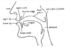 Without the resonating chambers in the head, the buzzing of the vocal cords would sound very unpleasant. The vocal tract, a term encompassing the mouth cavity, and the back of the throat, down to the larynx, shapes the buzzing of the vocal cords like a sculptor shapes clay. Shape your mouth in an ee vowel (as in eat), then sharply inhale a few times. The cool sensation you feel at the top and back of your mouth is your soft palate. The soft palate can raise or lower to change the shape of the vocal tract. Opera singers often sing with a raised soft palate, which allows for the greatest amplification of the sound produced by the vocal cords. Different vowel sounds are produced by raising or lowering the tongue, and changing the shape of the lips. Say the vowels: ee, eh, ah, oh, oo and notice how each vowel requires a slightly slower tongue placement and slightly rounder lips. This area of vocal training is particularly difficult because none of the anatomy is visible from the outside!