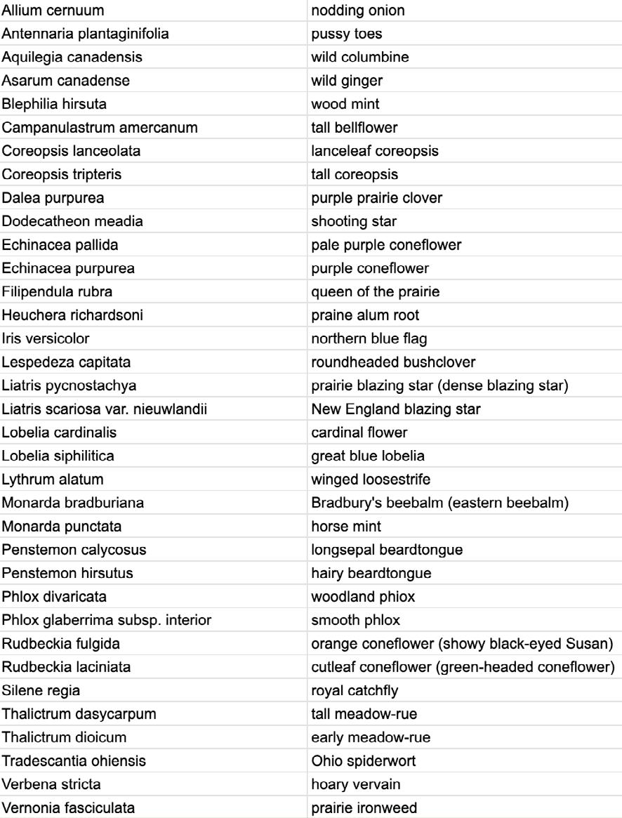 PLANT LIST the SPRING DROP