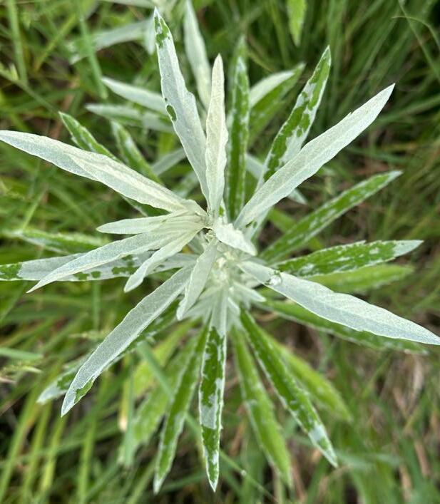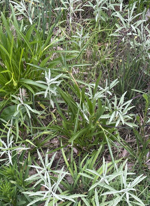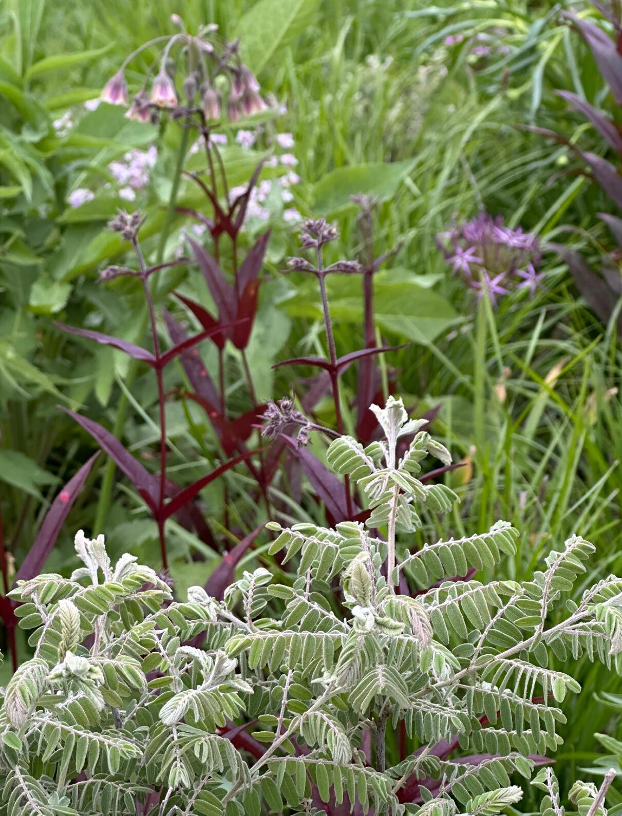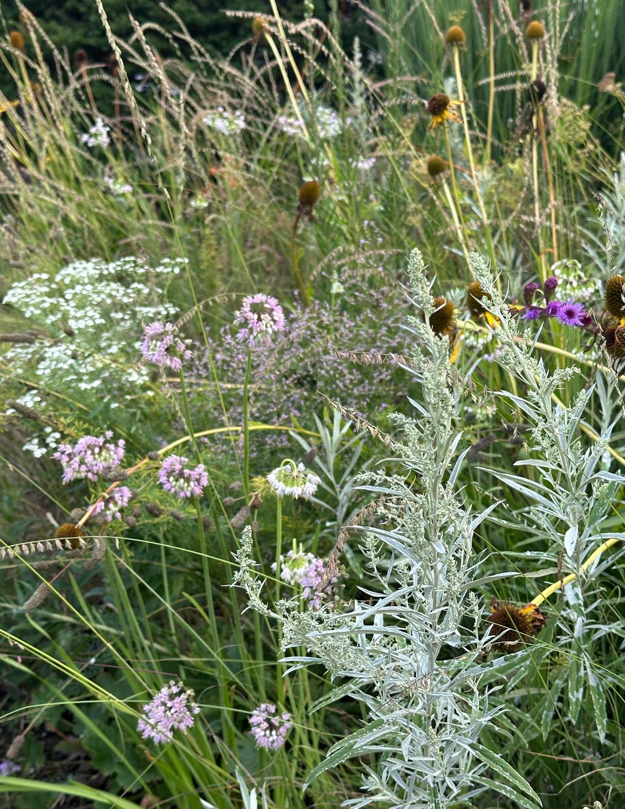 This plant spreads quickly via underground stems, and will pop up many inches away from wherever you first planted it. It’s best in a naturalized and designed meadow which will help keep it in check. Personally, I love the pops of silver leaves showing through (below).