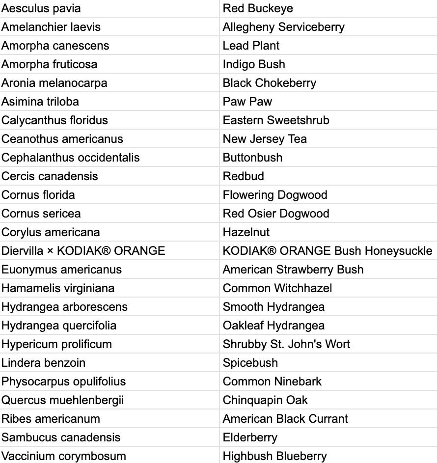 Most plants are 1 or 2-gal size, a few are quarts. Prices range $15-$49. ! denotes a first-time Botany & Co. offering A mixture of native, native cultivars, and climate appropriate plants.