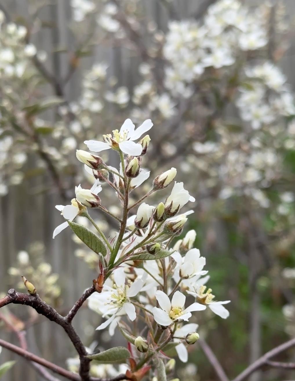 Aronia melanocarpa | One of my favorite native smallscale shrubs, Aronia has a multi-branching, open-habit. Clusters of cheerfully fragrant white flowers emerge in spring, loved by pollinators, with handsome deep purpleblack berries in late summer/early autumn.