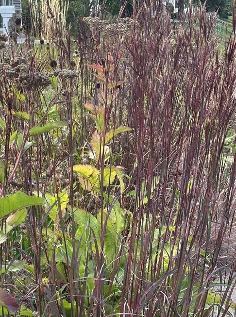 August 14 2025 | Andropogon ‘Blackhawks’ is a late-summer standout in the front meadow. Roughly 5’ tall with beautiful yellow flowers, the red color intensifies heading in to autumn. Resilient and easy to grow.