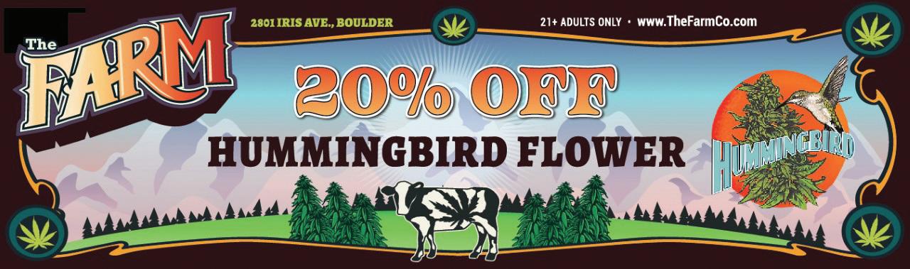 Taste for yourself Ask about our 30 day free trial 303-604-3000 www.eldoradosprings.com Met Your Soul Drum Yet? HAND DRUMS, DRUM SETS, AND LESSONS FOR KIDS OF ALL AGES. The Drum Shop 3070 28th St., Boulder 303-402-0122 NATIVEROOTSCANNABIS.COM GROWN LOVE TWENTY LOCATIONS! FIND ONE NEAR YOU COME SEE WHAT WE’VE BEEN GROWING JOIN US FOR WALLEYE WEEKENDS! Direct to us from Red Lake Nation Fishery, MN (720) 630-8053 • 11am-9pm Atlas Valley Center, SW corner of Arapahoe and 95th www.eatreelfish.com 2426 Arapahoe Ave. Boulder 303-443-0596 www.kalitagrill.com Classic Greek Favorites! MARCH SPECIALS ALL MONTH LONG BUY MORE SAVE MORE 25% OFF 30% OFF 20% OFF Spend $100 get 10% off Spend $150 get 15% off Spend $200 get 20% off EVERY FRIDAY, SATURDAY & SUNDAY Thursday 2 Friday 3 Saturday 4 Sunday 5 Monday 6 Tuesday 7 Wednesday 8 40% off Batch 1g Carts 2 for $30 OTD Spherex X 1g Carts 25% off Willies Reserve 1g Distillate Carts 20% off Pre-packed Flower 25% off Inferno Deli Flower Tier 1-3 Buy your max (28g) SPIN THE WHEEL FOR A PRIZE 25% off Inferno Deli Flower Tier 1-3 Buy your max (28g) SPIN THE WHEEL FOR A PRIZE 25% off Inferno Deli Flower Tier 1-3 $80 OTD Bud-Buster Ounces $4 OTD Pre-Rolls 25% off 14er prepacked flower $6 OTD Ript Gummies 100mg Buy one, get one 1/2 off Smokiez 4 for $40 OTD El Sol Wax & Habana Shatter 2 for $38 OTD Shift Live Resin Wax 206 South Main St. Longmont • 720-487-9229 • www.spacestationdispensary.com Specializing in emotional & mental Wellbeing 2749 Iris Ave. Boulder 720-829-3632 moonlightgardenacupuncture.com