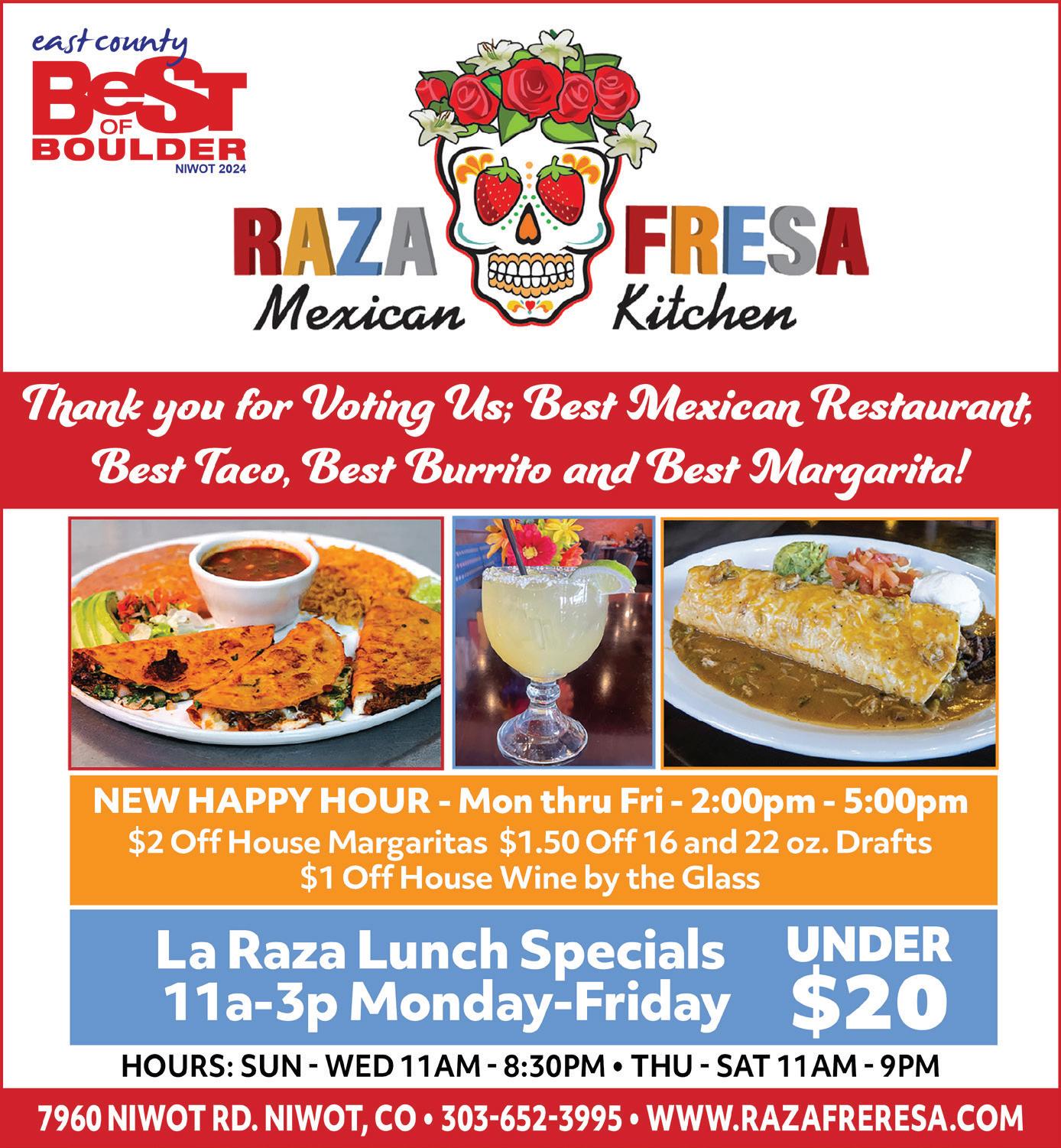 1495 Canyon Boulevard, Suite CO 1, Boulder, CO 80302 Phone: 303.494.5511, FAX: 303.494.2585 editorial@boulderweekly.com www.boulderweekly.com