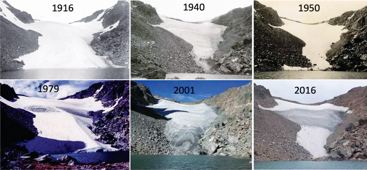 Before and after photographs always leave a stark impression about the passage of time. I recently compared two photos taken decades apart. They told the story of a glacier, Rocky Mountain National Park’s Taylor Glacier, then and now.