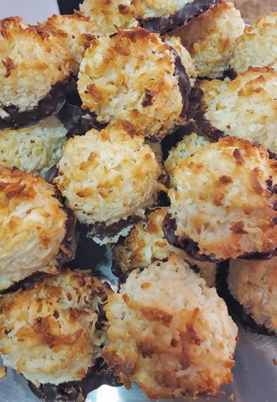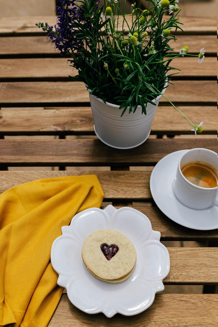 with fg jam and walnut topping — is of course a tribute to Uzarowski’s grandma, with the Lilly — a chocolate shortbread flled with chocolate ganache and then dipped in chocolate — named after her daughter.