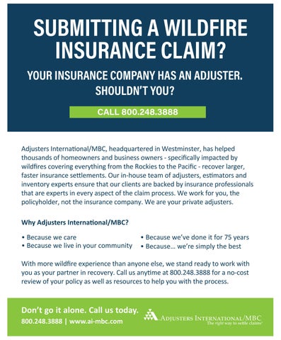 Adjusters International/MBC, headquartered in Westminster, has helped thousands of homeowners and business owners - specifically impacted by wildfires covering everything from the Rockies to the Pacific - recover larger, faster insurance settlements. Our in-house team of adjusters, estimators and inventory experts ensure that our clients are backed by insurance professionals that are experts in every aspect of the claim process. We work for you, the policyholder, not the insurance company. We are your private adjusters.