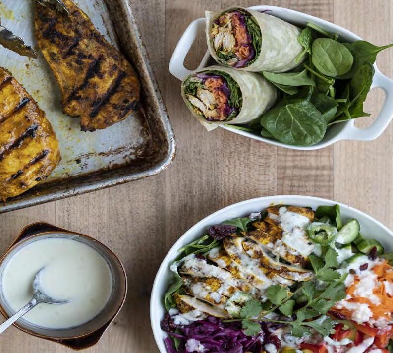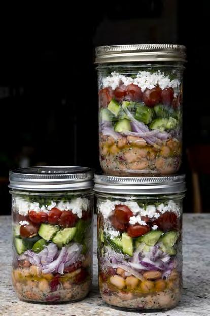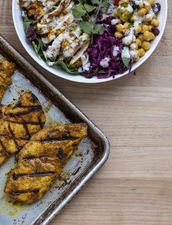 This zesty creamy dressing can be used as a marinade for the chickpeas, as a salad dressing or as a sauce in a wrap. This salad can also be prepped in four mason jars, with the chickpeas, chicken and dressing on the bottom, and the veggies on top, for a planned lunch-to-go.