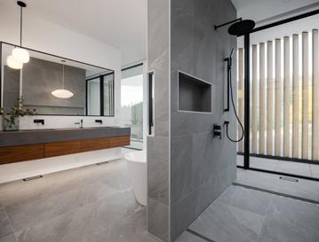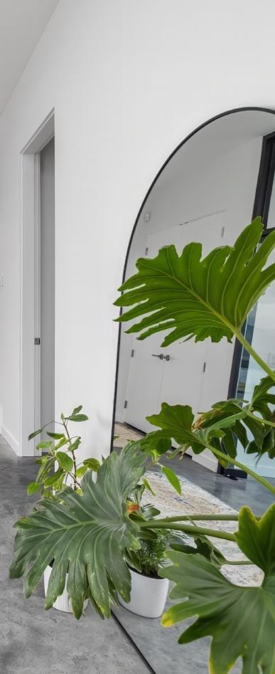Before reaching the front door, my attention is drawn to the carport and single-car garage (with space for a lift). The owner, a passionate car and motorbike enthusiast, wanted that passion reflected in the design, so Chris created a generous carport that flows into a glass-encased garage inside that is reminiscent of a high-end showroom. It’s both functional and expressive, allowing light to filter through the home.