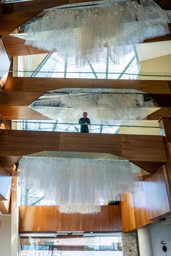 At the 10-foot Corten steel front door, the lake stretches away on your right for miles. No other homes break the horizon; everything here is about that view. “When I designed the house, I thought about every angle,” Chris says. “The orientation, set back into the bank, and the way it’s centred on that sightline were important.”