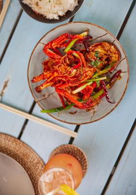 Asian-style street food at laid-back Walker d’Plank restaurant.