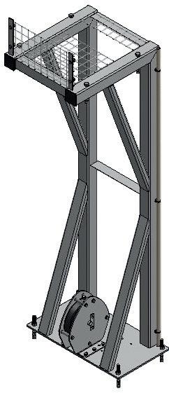 Zwei parallele Rinnen von 0,5 m Länge im Abstand von 0,2 m zu einer Mittelwand. Der Antrieb zum Ziehen der Last befindet sich oben auf der Rampe. Das Getriebe wird dadurch weniger beansprucht. Die Leistung der Antriebseinheit beträgt 3 kW. Die 180°-Umlenkrolle ist auf einem hochfesten Bronzering montiert. Sie befindet sich am Ende der Rinne und ermöglicht müheloses Drehen der Kette.