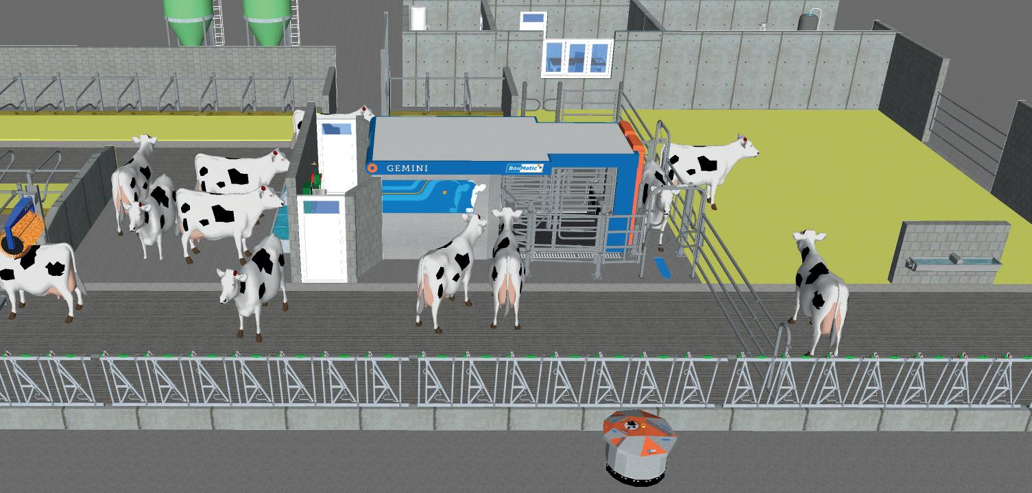 Hos BouMatic forstår vi, hvor vigtig kotrafik og ruter er i staldlayoutet. Enkle, åbne ruter sikrer jævn kotrafik med køer, der er rolige. Dette forbedrer mælkeproduktionen. En rolig ko har mindre adrenalin, og jo højere oxytocinniveau, jo mere mælk vil hun producere. Da Gemini-malkeroboten optimerer kotrafikken, vil det også hjælpe med at stimulere højere mælkeproduktion. Det, i kombination med layout af stalden, er vigtigt for koens komfort og velvære, hvilket forbedrer koens produktivitet og mælkekvalitet.