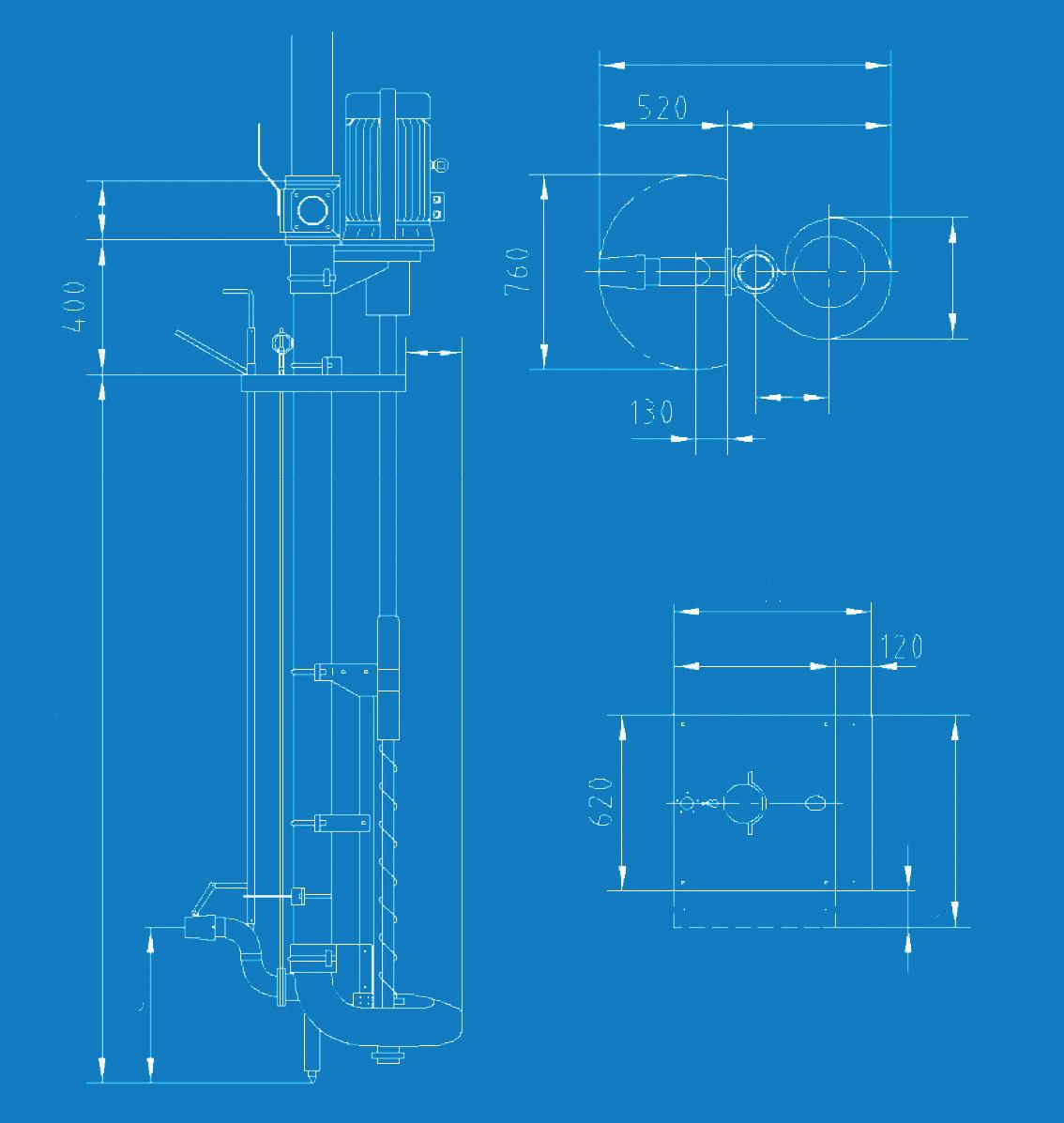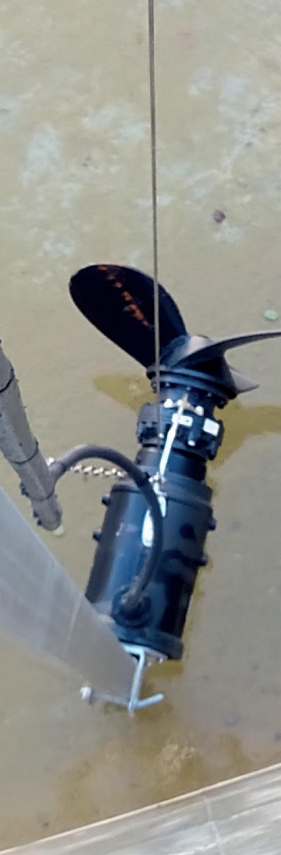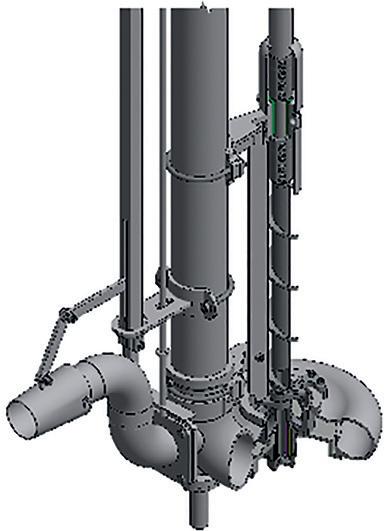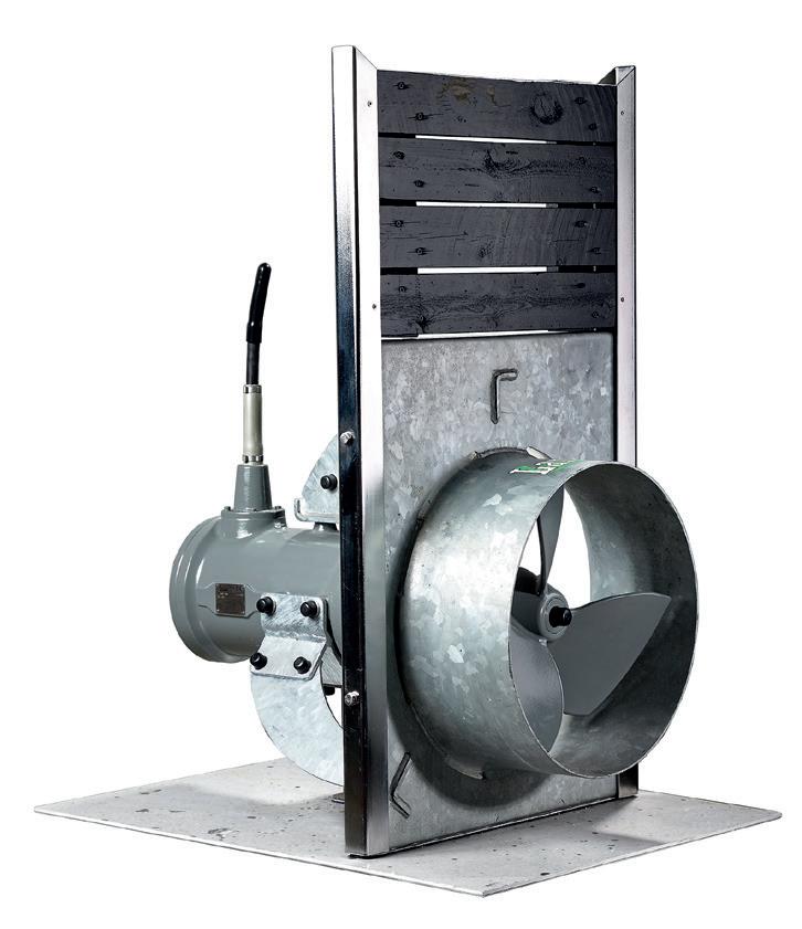 Der abgeschiedene flüssige Teil fällt in den Kanal und wird in die zylindrische Grube abgeleitet. In der Grube befinden sich eine Pumpe mit vertikaler Achse zum Spülen und ein Mischer zur Homogenisierung der Gülle.