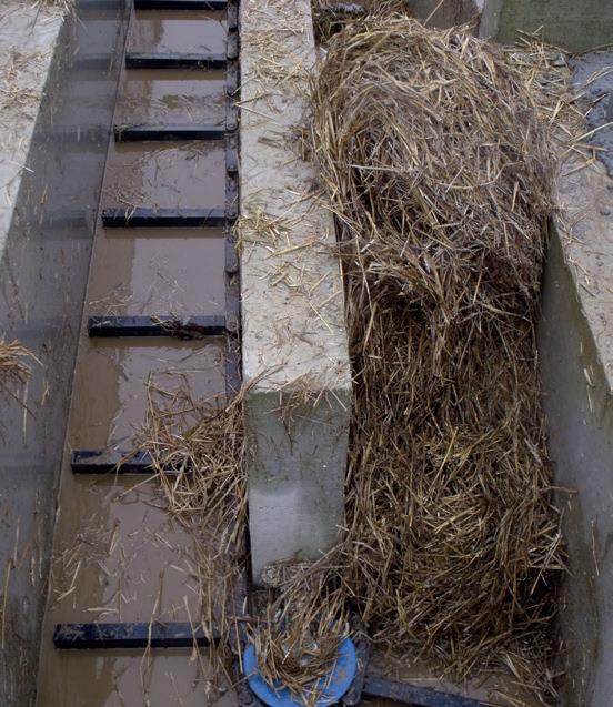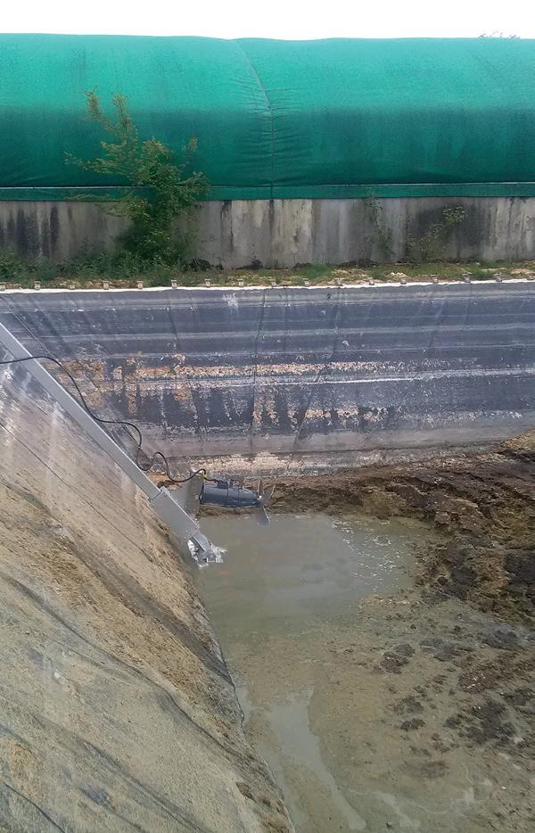 Der abgeschiedene feste Teil wird auf der Plattform gelagert und der abgeschiedene flüssige Teil in der Lagune.